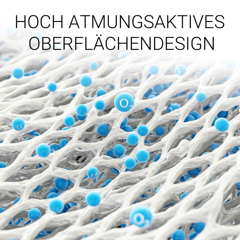 Easy breathing: the modern shape-optimised design of the FFP2 mask ensures a tight fit, especially for people who wear glasses and prevents pressure points. The novel, thin and particularly breathable 5-layer non-woven fabric and the free distance from the mouth allow it to breathe easier and freely.