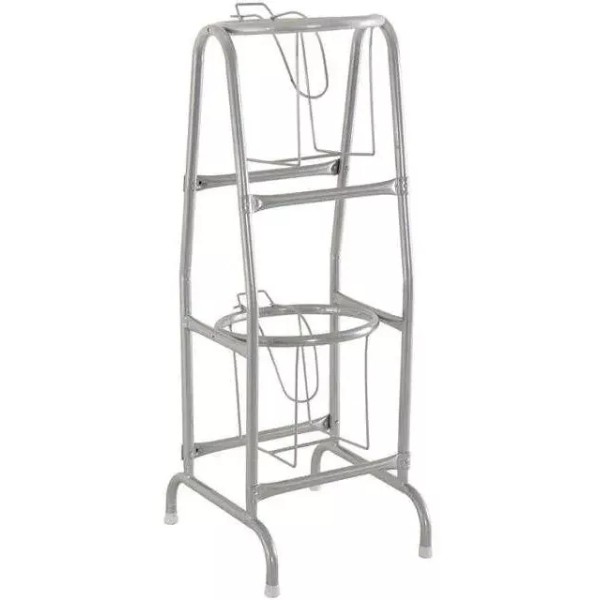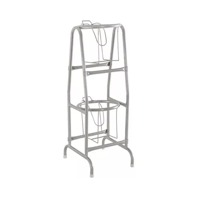 Está elaborado en una estructura de acero redondo, con acabado de pintura electrostática que le permite mantener su color por más tiempo. Incluye dos canastas para garrafón, cada una con su lengua de seguridad para mantenerlo firme en su lugar.