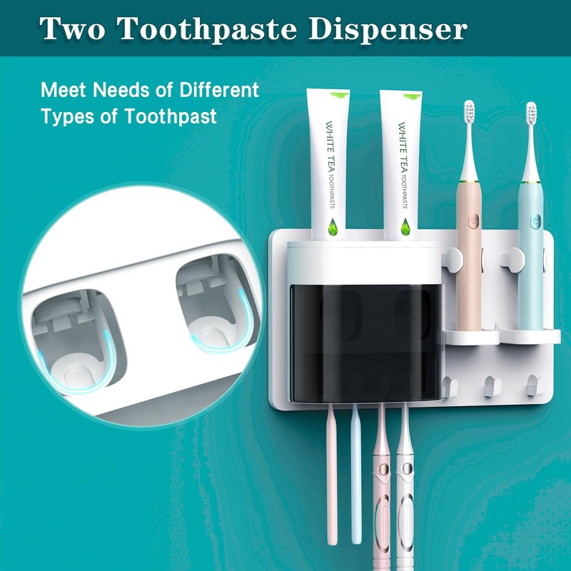 - 【Upgraded Two Toothpaste Dispensers】The tooth brushing holder has two built-in automatic toothpaste dispensers. Designed to allow multiple people use different types of toothpaste at the same time, can effectively distinguish between people toothpaste and children's toothpaste, or distinguish between morning toothpaste and night toothpaste. The toothpaste dispenser use vacuum pump technology, let your kids squeeze the right amount of toothpaste every time, prevent toothpaste waste.