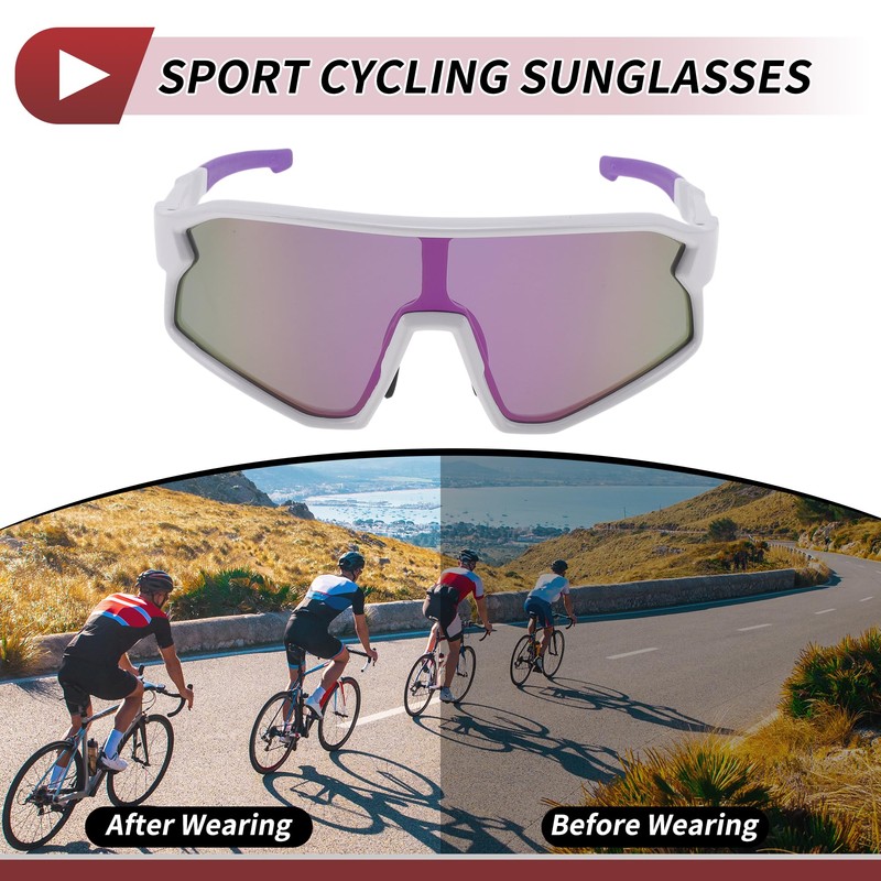 - Cycling Glasses Material: Made of HD PC lenses and Tri-Acetyl Cellulos frame, durable, not easy to break, anti-wind, anti-glare, dustproof. and comfortable to wear, does not oppress the eyes, does not affect breathing.