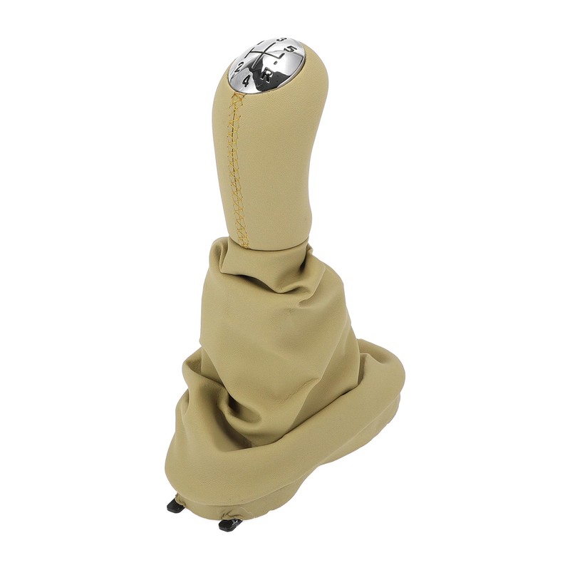 - Stick Shifter Lever Knob with Shift Boot Cover info. Beige, Chrome Silver Tone, 1 pcs.