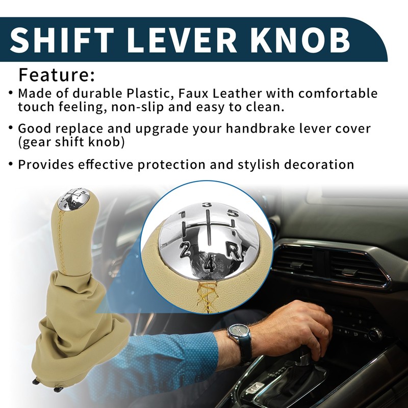 - Stick Shifter Lever Knob with Shift Boot Cover info. Beige, Chrome Silver Tone, 1 pcs.