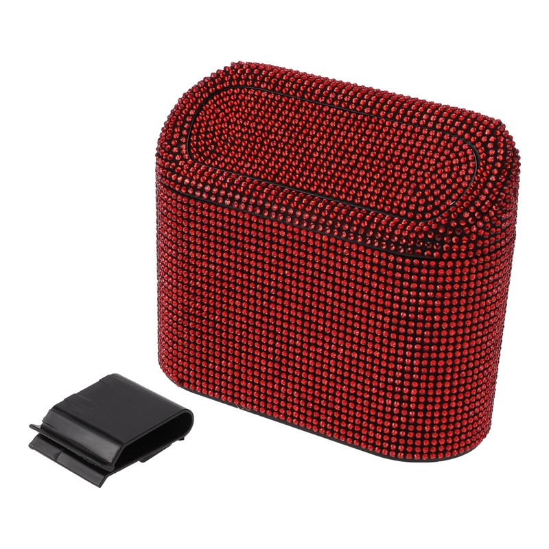 TUCKBOLD Auto Car Trash Can Durable Car Door Trash Bin Red 1 Pc 6.3" Length 2.8" Width 5.5" Height ABS Rhinestone