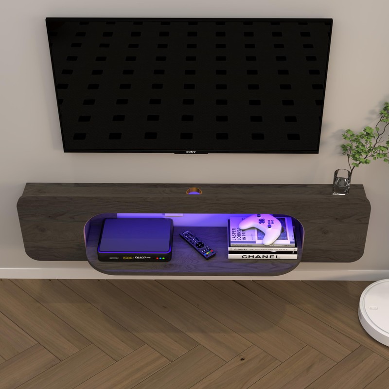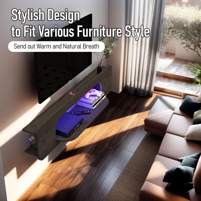 - [Wire Management] Our floating media console with cable holes helps you to get rid of messy cables. The 2 cable holes on the top and bottom for hiding wires keeping your stuff neatly organized and within reach!