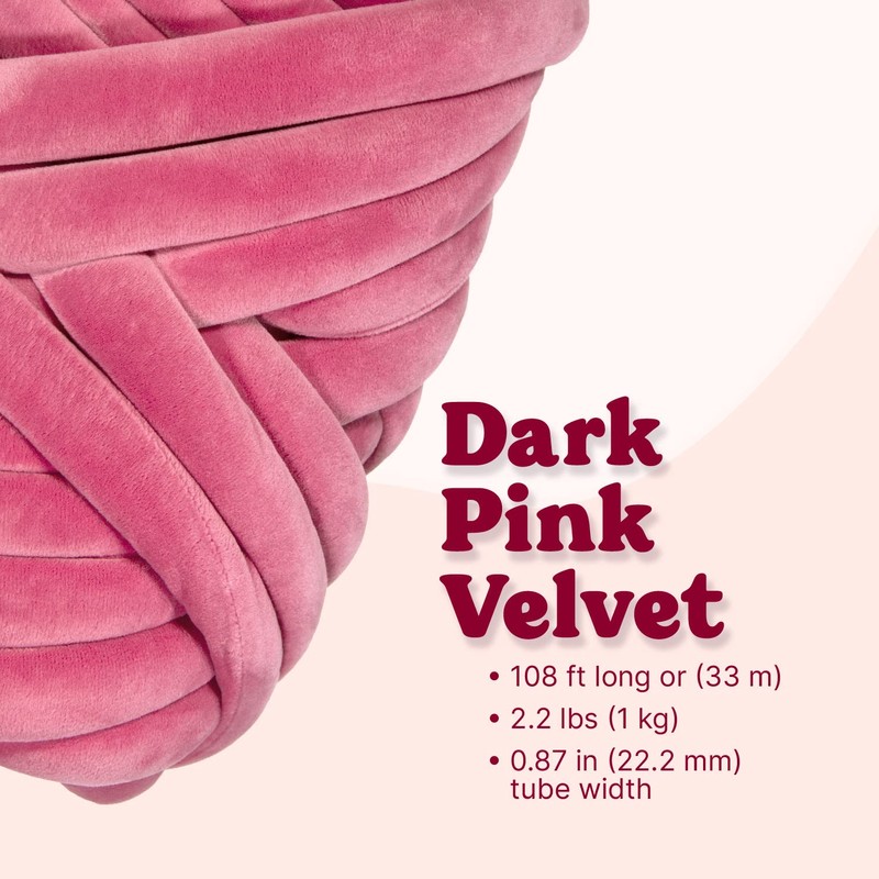 TUCO DEALS Ultra Soft 2.2 LBS (1kg) Chunky Yarn for Hand Knitting, Lush Velvet Fabric Tube Yarn to Make Handbags, Pillows, Blankets, Crafts (Dark Pink)