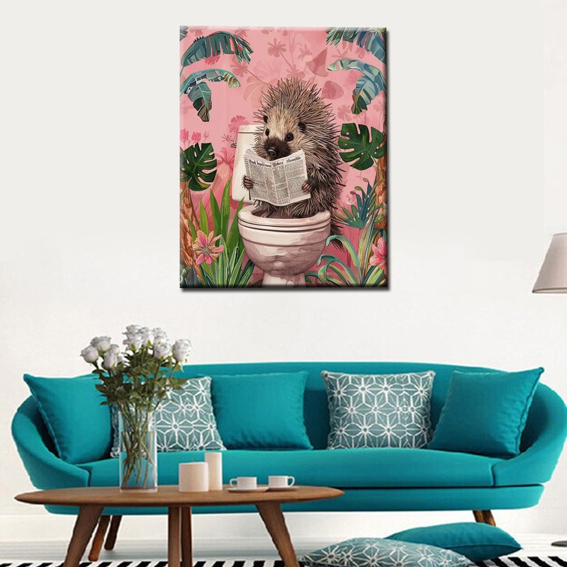 Tucocoo Paint by Numbers for Adults, Oil Painting Kit on Canvas with Brushes and Acrylic Pigment, Funny Animals on Toilet, Bathroom Picture for Home Decoration, 40 x 50 cm (Frameless)