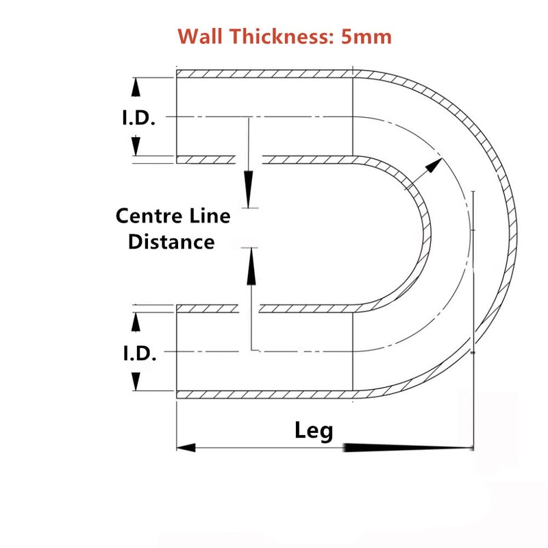 • 180 Degree Elbow Coupler, ID 1.88" (48mm), Center to Center Distance 5.11" (130mm), Leg Length 6.3" (160mm)