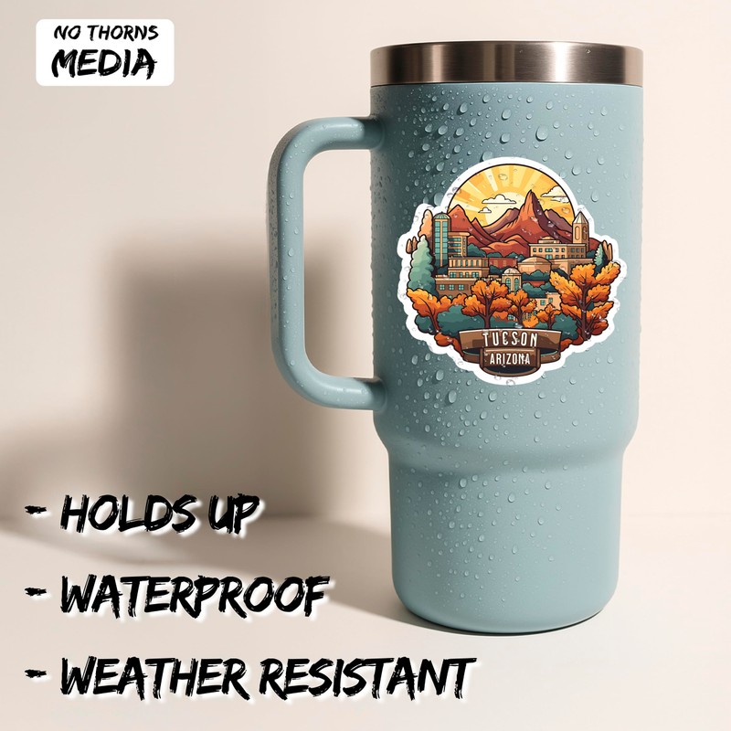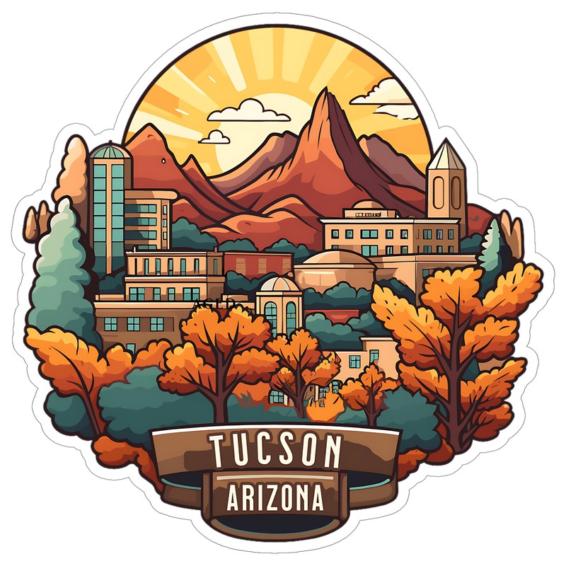 Tucson Arizona Sticker 4 Inch - Waterproof Vinyl Decal for Laptop Water Bottle Car Tumbler - Durable Aesthetic Long-Lasting Stickers for Adults ID44990