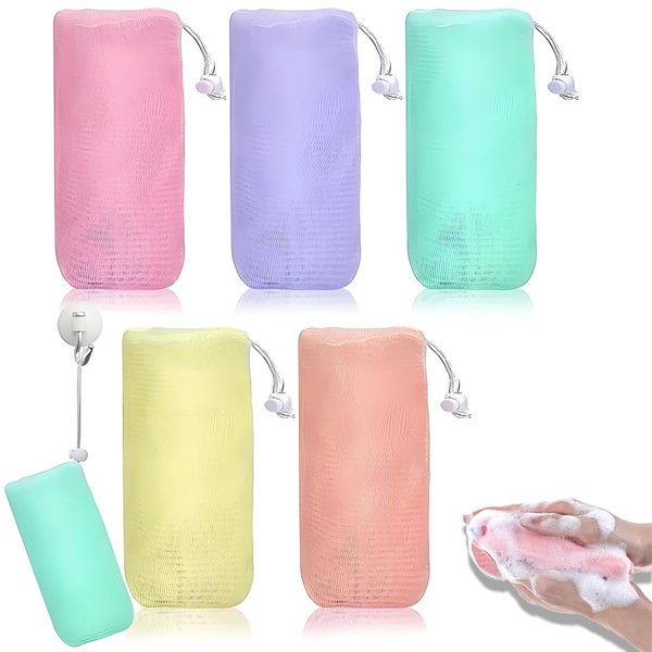 TUDOUZZZ 石鹸ネット あわだてネット 泡立てネット 5個セット 6層泡立てネット 濃密泡 きめ細か ひも付き 吊り下げ可能 清潔で衛生的 男女兼用