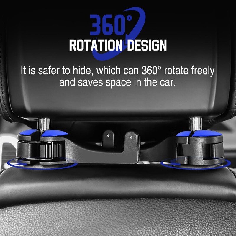 - 👍【360° rotation headrest hook】The 2-in-1 car headrest hook can be rotated 360 degrees horizontally after installation. You can hide the car handbag hook when not in use. By swivelling, the car hook can be used for either the front seat or back seat, and the locking function keeps it securely in place.