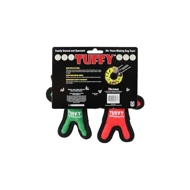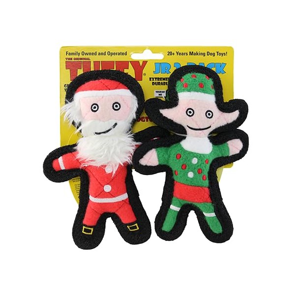 TUFFY - World's Tuffest Soft Dog Toy- Holiday -Jr Elf & Santa - 2 Pack. Squeakers-Multiple Layers.Made Durable, Strong & Tough.Interactive Play(Tug, Toss & Fetch).Machine Washable & Floats