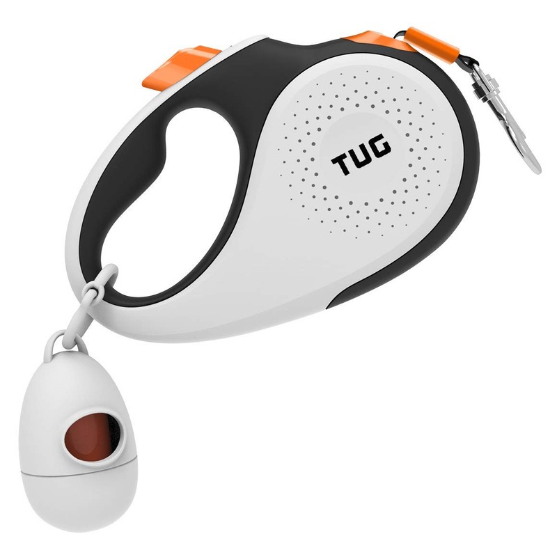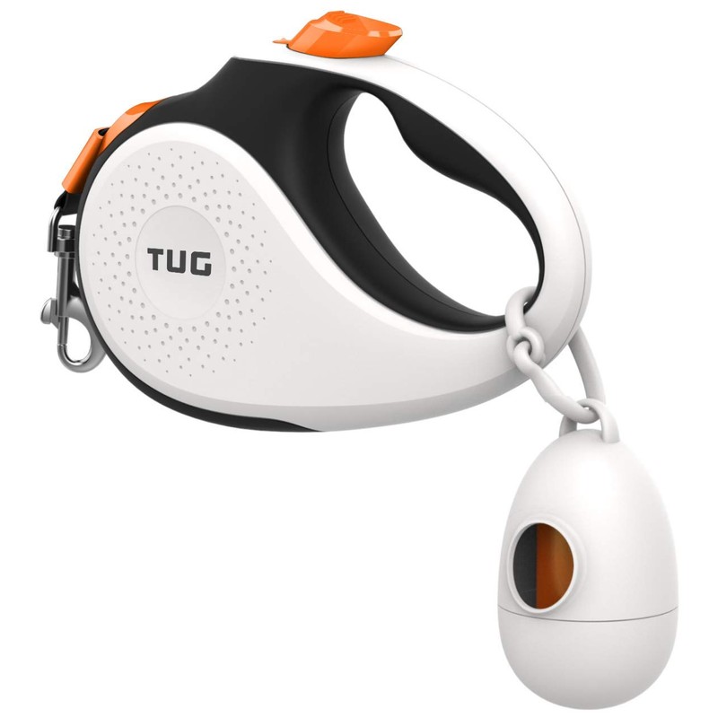 TUG 360° Tangle-Free Retractable Dog Leash with Waste Bag Dispenser (Small, White/Orange)