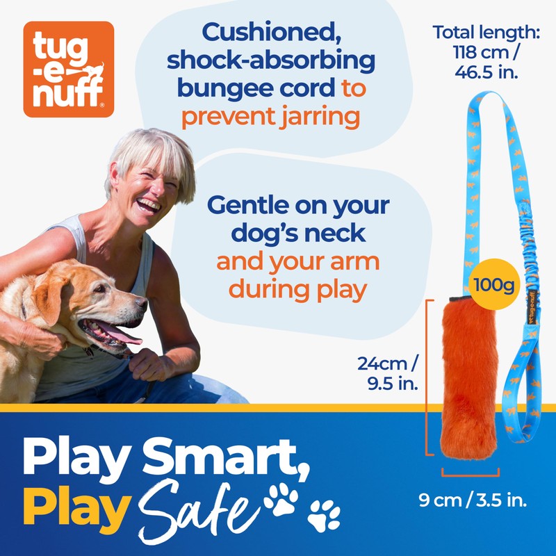 Tug-E-Nuff Faux Fur Squeaky Bungee Chaser Dog Toy (Teal), Tough Dog Tug Toy for Puppy, Small, Medium and Large Breeds, Interactive Training Chase Toys, 118 cm