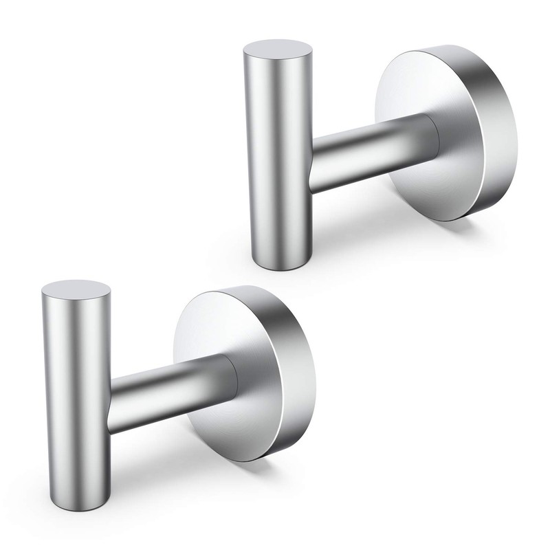 Tuggui Towel Robe Hook SUS 304 Stainless Steel Wall Mount for Bathroom Kitchen (2 Pack, Silver)