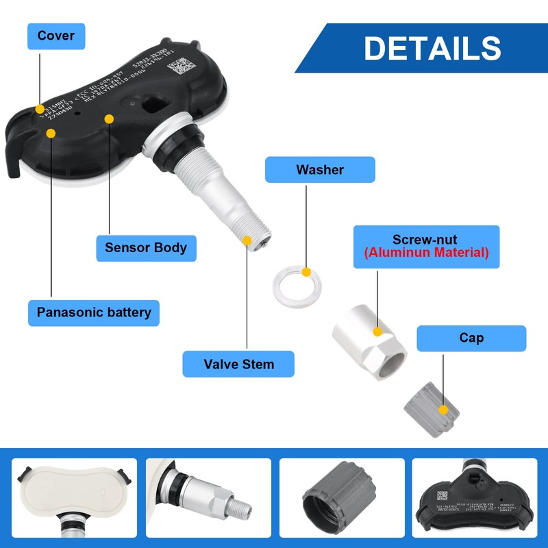 • Excelente calidad. La carcasa del sensor de presión de neumáticos es principalmente de plástico ABS, que tiene Alta dureza, fácil deformación, resistencia a los golpes, resistencia a la corrosión y durabilidad.