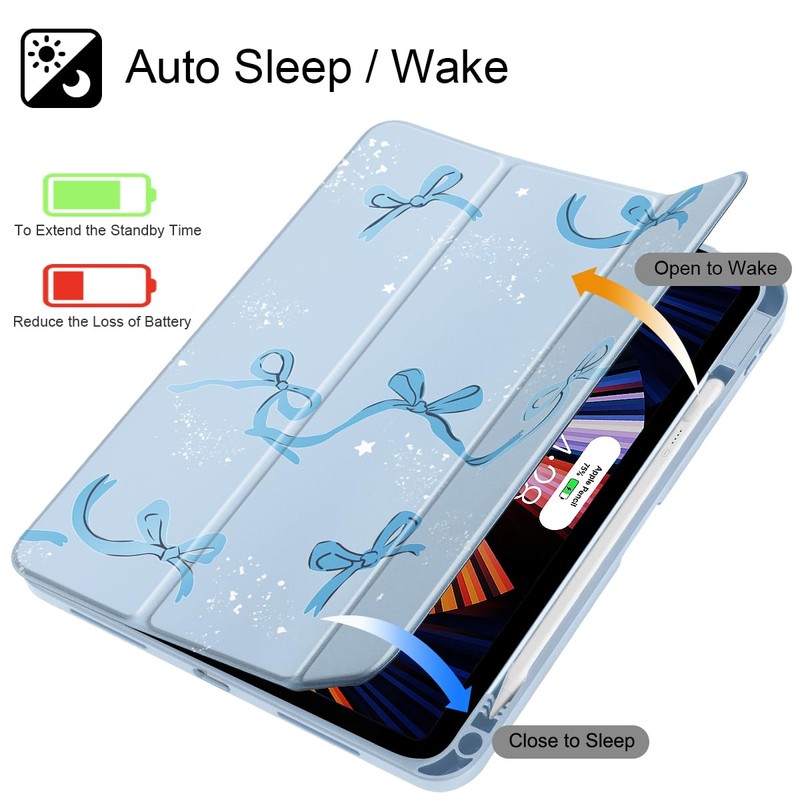 - Auto Sleep / Wake: Built-in magnetic strip, automatically wakes or puts your tablet to sleep when the lid is opened and closed. Protects and extends battery life. Powerful built-in magnets ensure a strong lock between the case & iPad.
