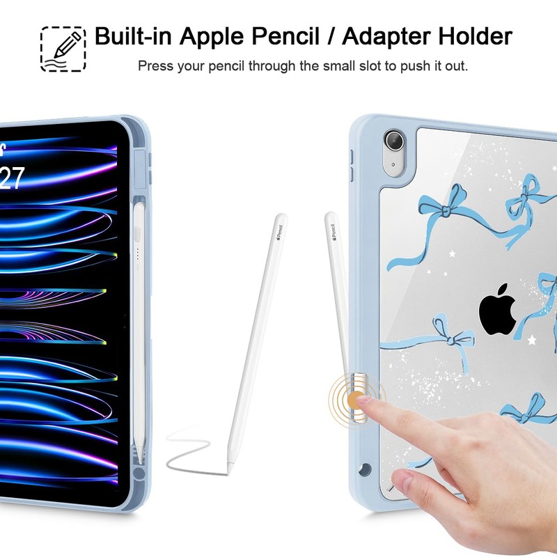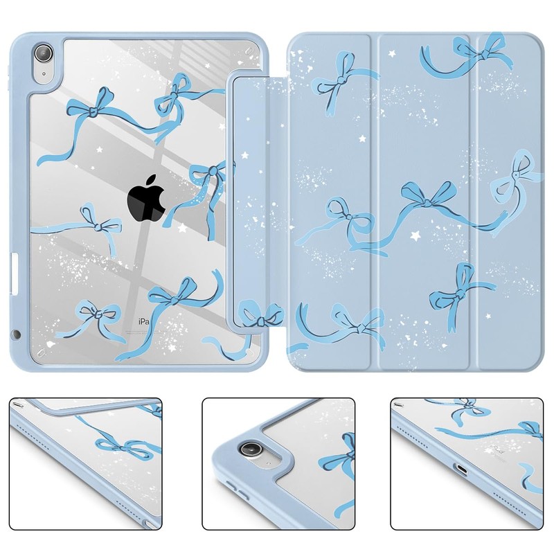 Tuiklol Tuiklol Case for iPad 11 inch (A16 Chip) 2025 Generation 11th / iPad 10.9 inch 2022 10th Gen, Buit in Pencil Holder with Shockproof Cover Clear Transparent Back Shell Auto Wake/Sleep, Bow-Blue