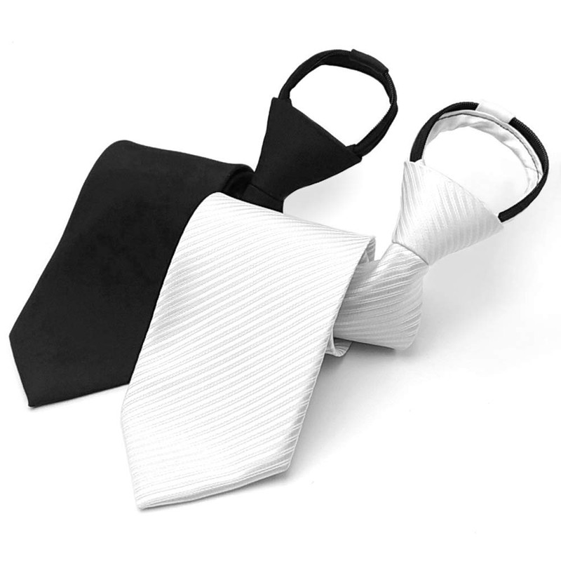 TUISKU Men's Necktie, One-Touch, White, Black, Zipper, Formal, Ceremonial Occasions, Solid Color, black white