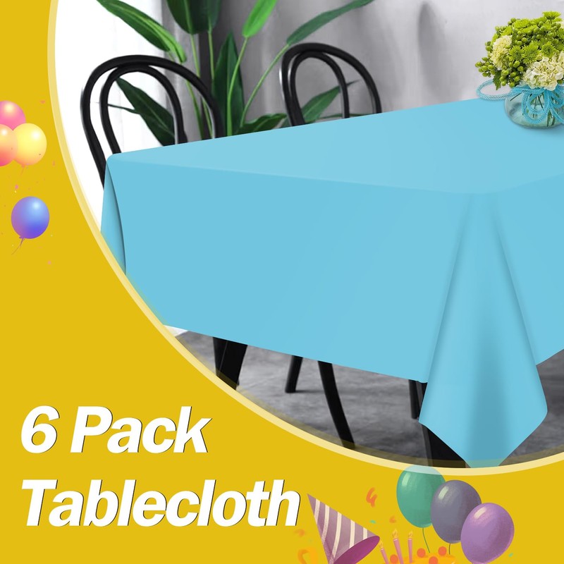 tujol Light Blue 6 Pack Plastic Table Cloth 54" x 108", Disposable Tablecloths Rectangle Table Cover, Plastic Tablecloths for Parties