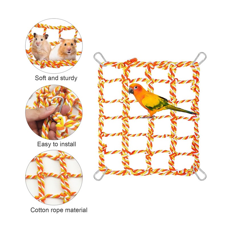 - Versatile use: pet bird swing climbing net is perfect for a variety of birds, parrots, budgies, hamsters, rabbits, ferrets, squirrels and other small animals for standing, climbing and playing. It is the perfect decoration and accessory for small animal cages.