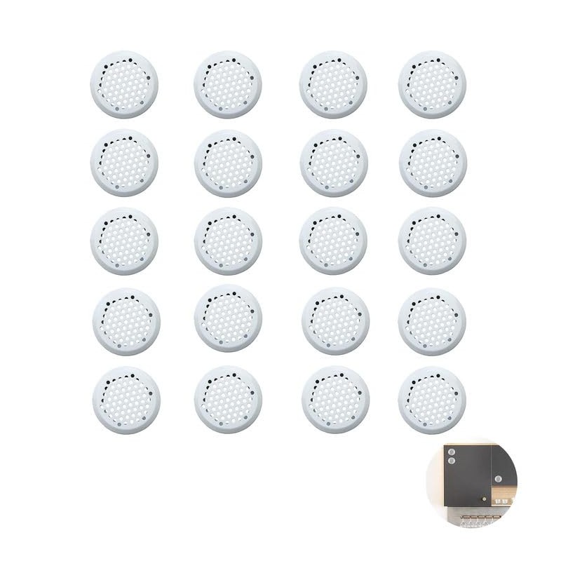 Tukeva Pack of 20 Round Ventilation Hole Ventilation Grille for Wardrobe Ventilation Grille Honeycomb Design for Kitchens, Bathrooms, Bookshelves, Wardrobes and Shoe Cabinets (White)