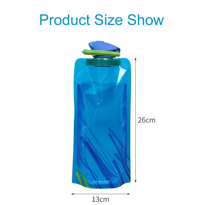 - Foldable: the foldable water bottle made of a flexible material that remains upright after filling with water and can be folded to save space after drinking.