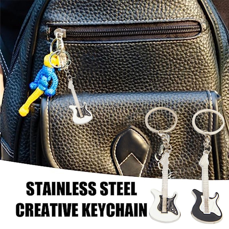 TUKNN Guitar Keychain,Metal Keychain,Music Instrument Keychain,Bass Keychain,Mini Guitar Keychain,Guitar Keychain,2pcs, white / black