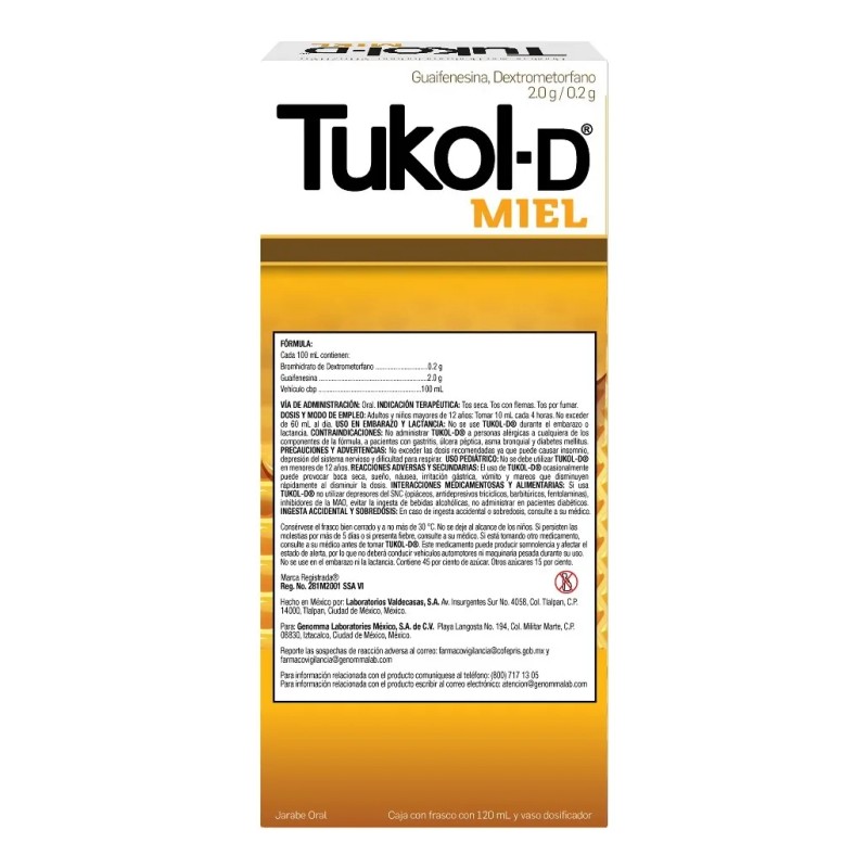 Tukol-d Adulto Jarabe Para La Tos. Sabor Miel, 120ml.