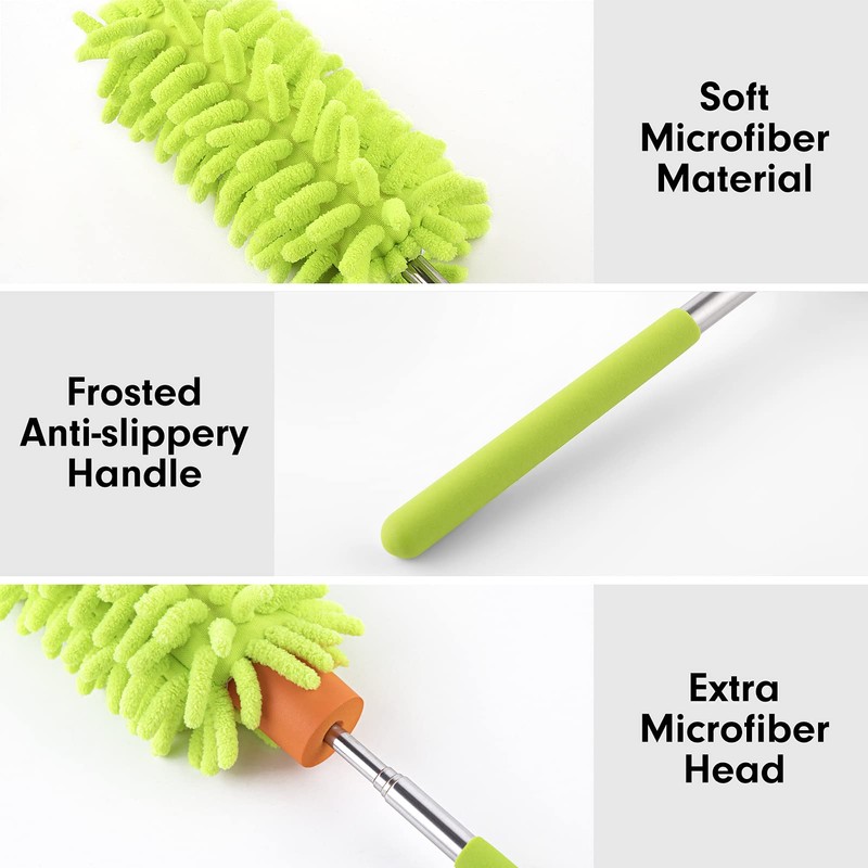 - Multi-use Extension Pole: This duster is suitable for cleaning the dust in car, office, computer, air condition, TV, light bulb, photo album and other household appliances dust, cleaning the dust from the sofa, table, cabinet, etc.
