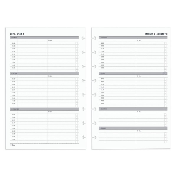 TUL® Discbound Weekly Refill Pages, Timed, Junior Size, January To December 2023