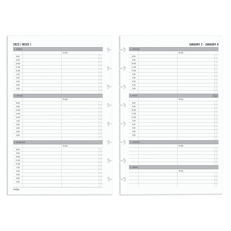 - Refill your discbound note-taking system with these pages. Each 2-page spread covers 1 week with hourly appointments, which make it easy to schedule your day.