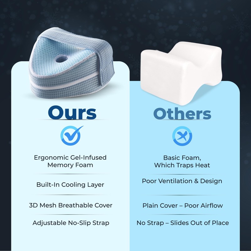 - Custom Fit Adjustable Strap: No more slipping or repositioning! Our new improved secure strap system keeps the orthopedic leg pillow for back pain in place all night, ensuring continuous support and restful sleep without tossing and turning