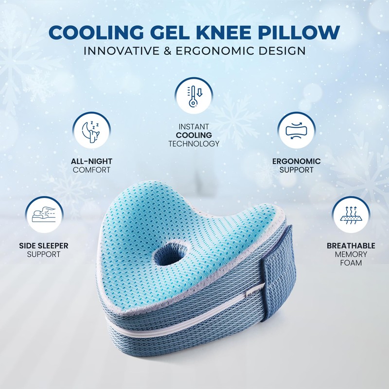 TULARIS Cooling Gel Knee Pillow for Side Sleepers Hip Pain - Between Leg Pillow for Side Sleeping - Sciatica Pain Relief Support for Lower Back, Knees, Joints, and Spine