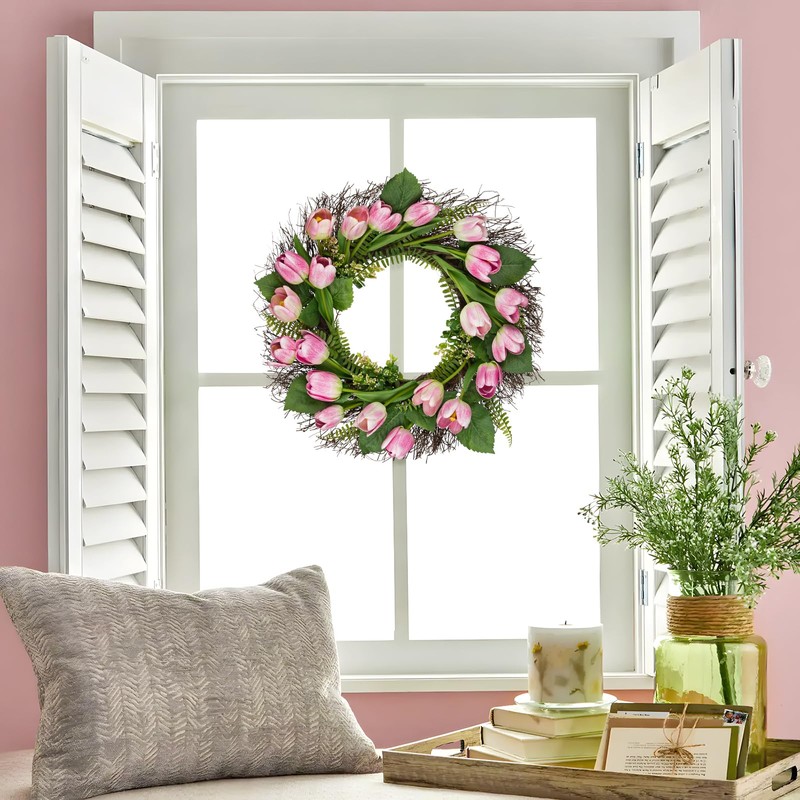 • Stunning Tulip Design: This tulip wreath features a lush, full circle of vibrant artificial tulips paired with clear-texture leaves on rattan base. Its ultra-realistic design brings the beauty of blooming tulips to life, adding a fresh, elegant, and nature-inspired touch to any space