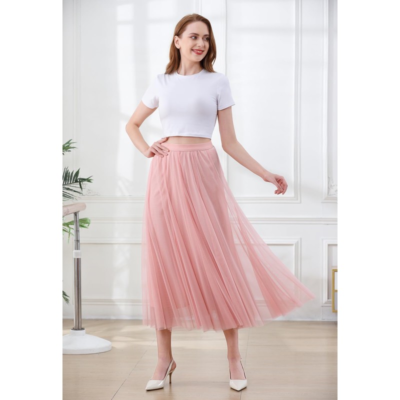 - COMFORTABLE ELASTIC WAIST BAND: High-waisted pleated tulle skirt features an elasticized waistband and an A-line silhouette to fit all shapes and sizes.