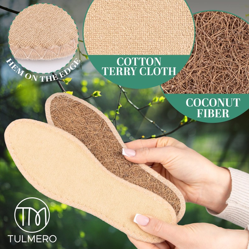 - Insoles for men and women: our soft insoles are perfect for barefoot shoes. Made from cotton terry cloth and coconut fibres, they offer maximum comfort and breathability, making sweaty feet a thing of the past.