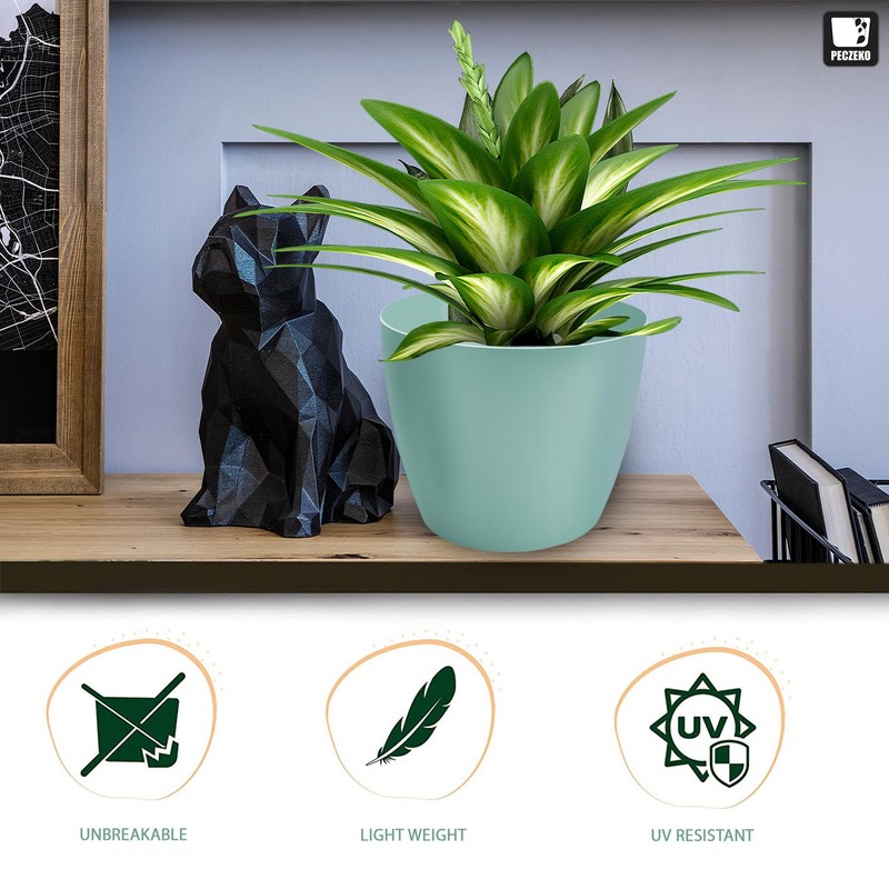 TULMERO Matte Flower Pot, Plastic Planter, Decorative Pot for Large and Small Plants, Set of 2 Flower Pot, Herb Pot, (2 Pack) Mint, Diameter 9.5 cm
