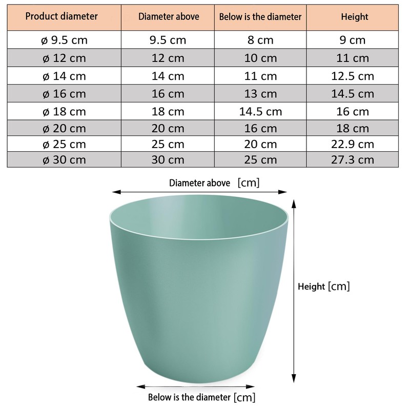 • High-quality construction planter is the perfect choice. Flower pots in various sizes, from 9.5, 12, 14, 16, 18, 20, 25 and 30 cm, the pots are made of lightweight and non-deformable plastic flower pot plastic flower pots. In addition, the pots are UV-resistant, which means they do not fade in the sun and retain their elegant appearance for a long time.