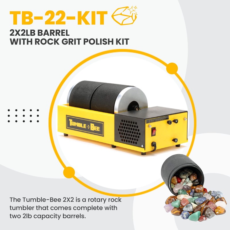 Tumble-Bee Rock Tumbler - Double Tumbler for Adults and Kids - Rotary Machine for Stone, Rock, Metal and Sea Glass - Polishing Machine Kit for Professionals & Hobbyists - Model TB-22-KIT