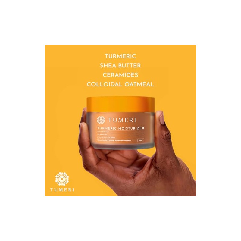 TUMERI Crema hidratante facial de cúrcuma y crema corporal 2.0 fl oz - Crema facial nutritiva e hidratante para piel seca - Infundida con curcumina de cúrcuma, manteca de karité, avena coloidal