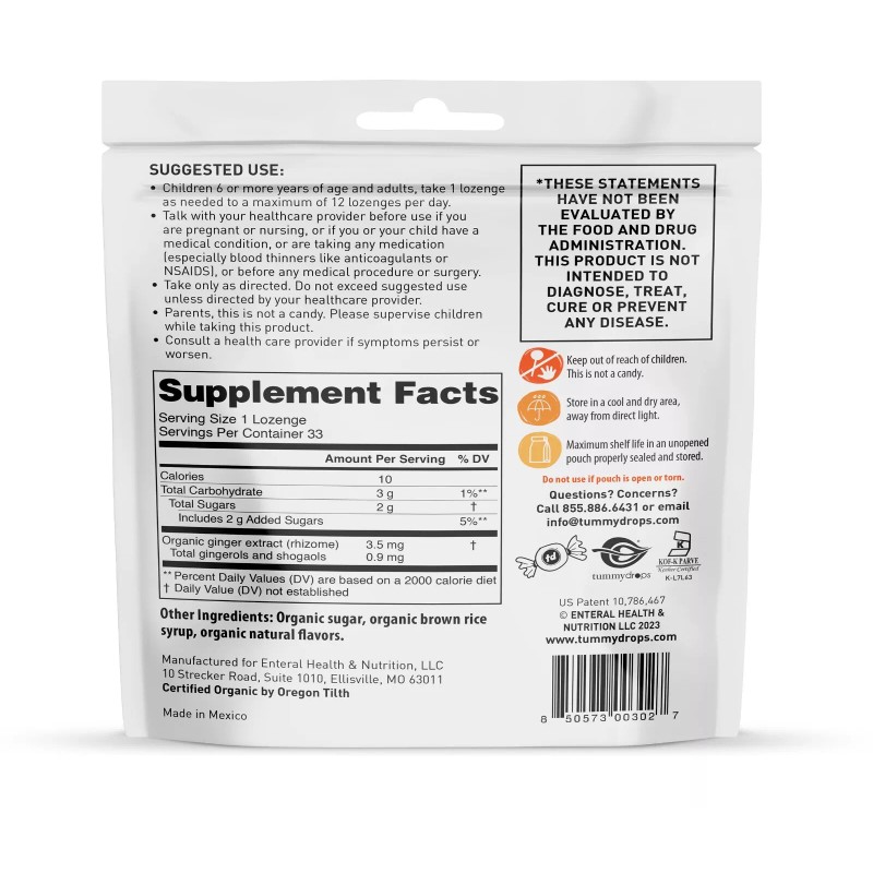 tummydrops USDA Organic Ginger Tummydrops (Resealable Bag of 33 Individually Wrapped Drops)