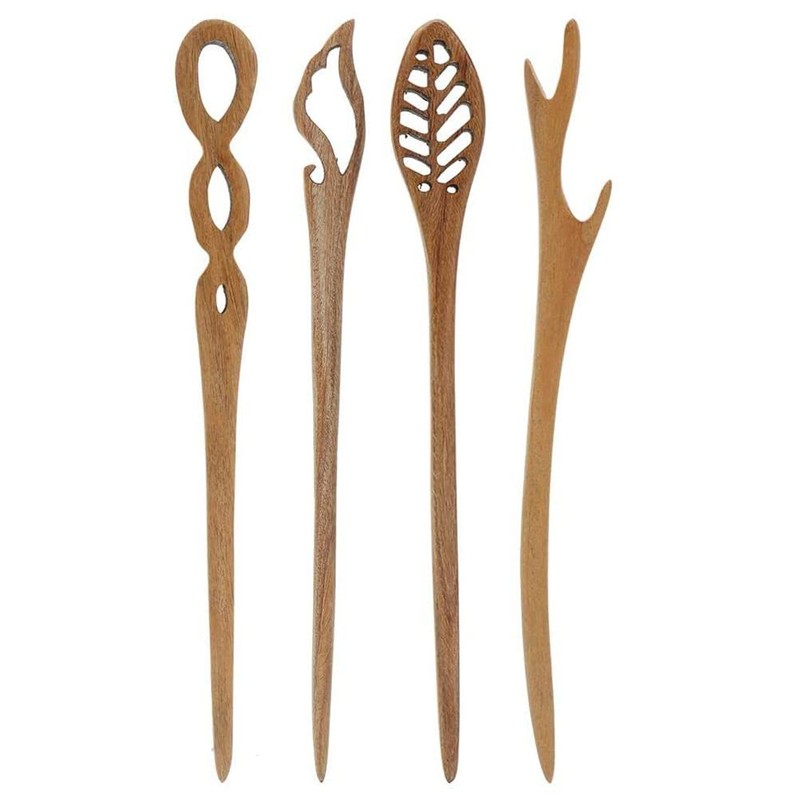 Tumnea Wooden Hair Pin Chinese Japanese Hair Sticks Set Wooden Hair Pins Long Horn Fork Pen Hair Clips for Buns Chignon Holder Hair Accessories - Pack of 4