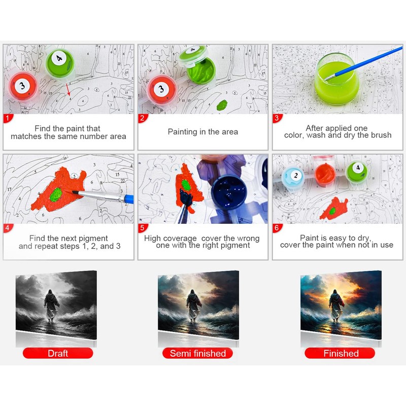 - Easy To Be A Painter: Paintings are simple and easy to draw, not complicated, and can be easily handled by children, adults, and the elderly. Two easy steps to complete a painting, first: dip the paint. Second: paint the corresponding numbers on the canvas.