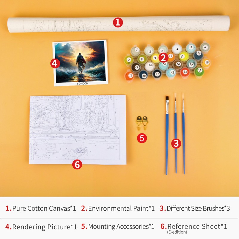 TUMOVO Jesus Walking on Water DIY Paint by Number Jesus Back Paint by Numbers for Adults Kids Paint by Numbers on Canvas Beautiful Sunset Paint by Numbers for Beginner Oil Painting Kits 16x20inch