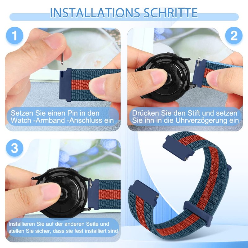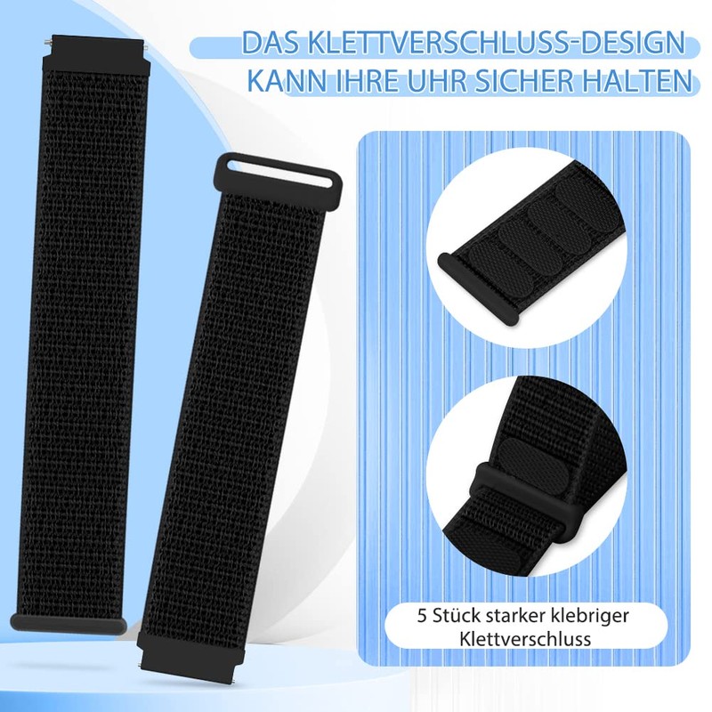- Compatible models: 22 mm nylon strap suitable for almost all watches with 22 mm lugs, such as Samsung Galaxy Watch 3 45 mm; Galaxy Watch (46 mm); Gear S3 Classic/Frontier; Garmin Venu 3/Venu 2/Vivoactive 4 (45 mm)/Forerunner 255/255 Music/265; Amazfit Bip 6; Fit Bip 5; Amazfit Balance;Amazfit Cheetah/Cheetah Pro;Amazfit Stratos/Stratos 2/2S/Stratos 3;Amazfit GTR 2/GTR 2e/GTR 3/GTR 3 Pro/GTR 4;Xiaomi Redmi Watch 5 Active;Xiaomi Redmi Watch 5 Lite;Huawei Watch 4/ 4 Pro/3/3 Pro etc.