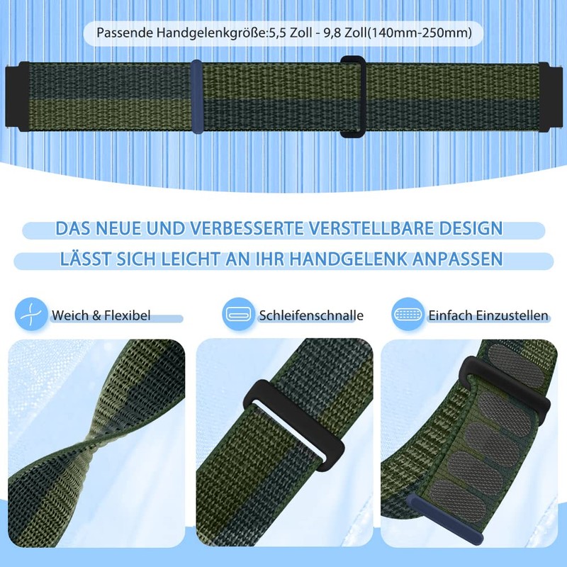 - Unique design for adjustable size: 22 mm nylon bracelet with 5 strong sticky magic stickers, allow you to freely adjust the required size according to the size of your wrist, it is very easy to adjust and use. The suitable wrist size is: 5.5 inches - 9.8 inches (140 mm - 250 mm).