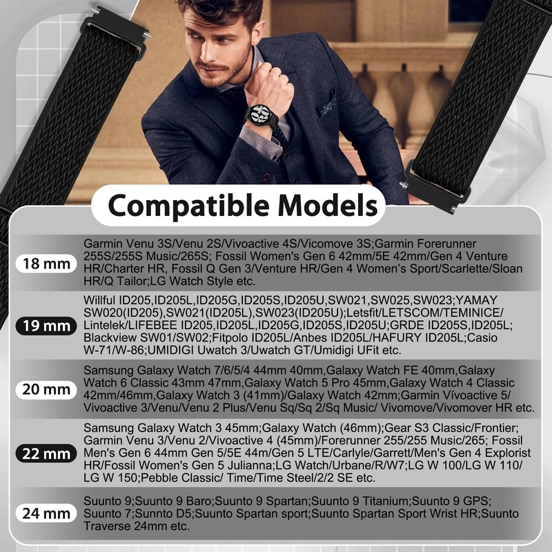 - 【Premium Elastic Nylon Material】24mm elastic watch bands are made of premium nylon materials,which is breathable, comfortable, lightweight, durable, and can be washed. 24mm nylon watch bands are suitable for attending different occasions, and also suitable for people of all ages, especially suitable for gifting to family and friends.