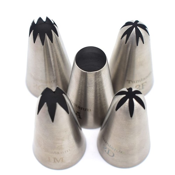 Tumtanm #1A #2F #2D #1M #2CZ Seamless Stainless Steel Piping Icing Tips, 5 Pack Extra Large Piping Nozzles Cupcake Decorating Kit