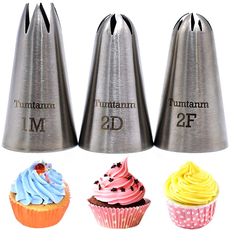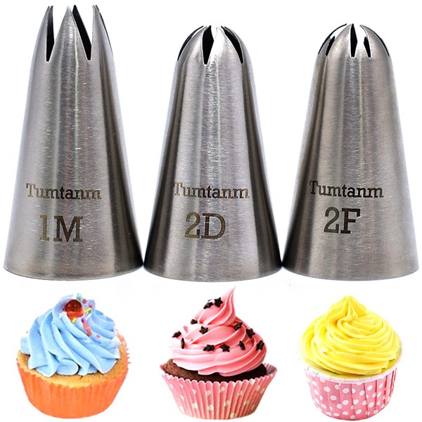 Tumtanm 1M 2D 2F Seamless Stainless Steel Large Icing Piping Nozzles, DIY Icing Nozzle Tool for Cupcakes