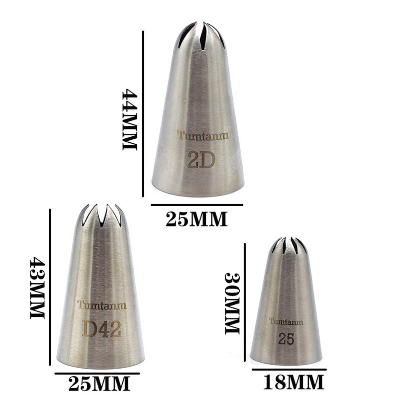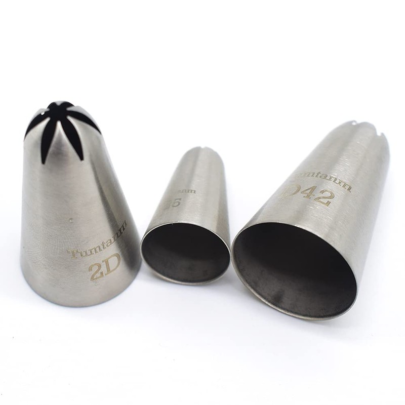 Tumtanm #2D #D42#25 Seamless Stainless Steel Large Icing Piping Nozzles, DIY Icing Nozzle Tool for Cupcakes
